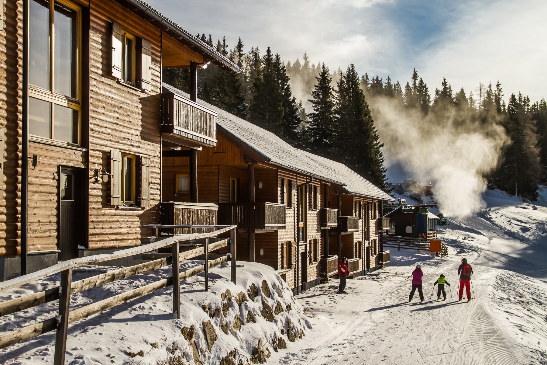 Eine sportlich elegante Feriendorf - Anlage direkt an der Piste und am Lift gelegen, am Ausgangspunkt unzähliger Wanderwege mit wunderschönem Panoramablick über das Tal und die herrliche Bergwelt, umgeben von urtümlich schöner Naturlandschaft auf 1650 m Seehöhe.